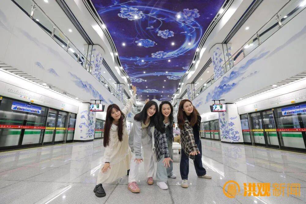 “太惊喜了!坐地铁竟像逛艺术馆,每一处都藏着南昌的浪漫与底蕴!”在安丰站,前来打卡的游客们纷纷举着手机,定格下青花瓷柱的雅致身影。车站内,蓝花白底的青花瓷花纹交叉错落,一根根立柱宛如精心雕琢的瓷瓶,流畅的线条搭配清新的色调,自带中式美学氛围感,成为吸引众多游客驻足定格的热门打卡点。